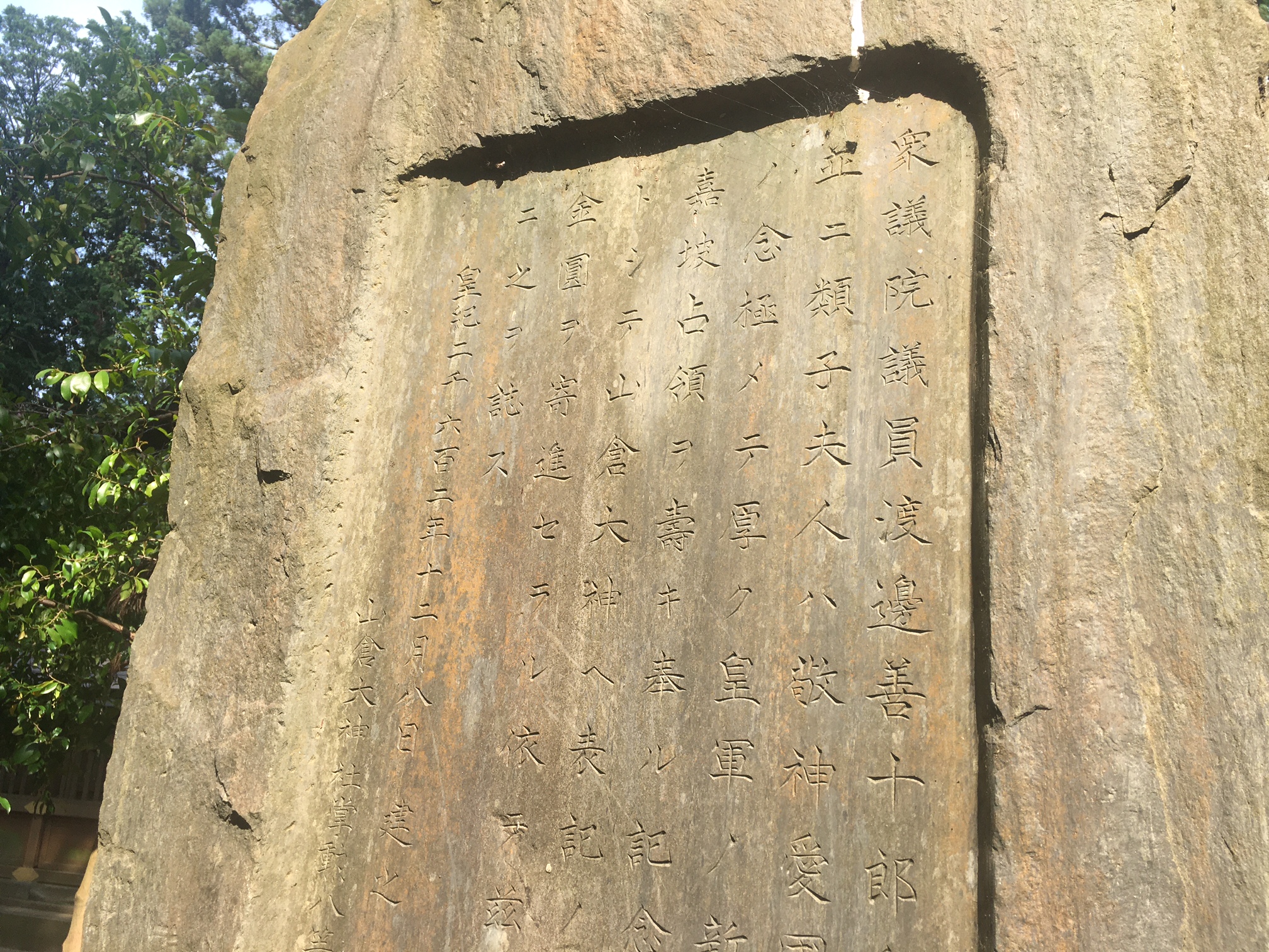千葉県香取市にひっそりとたたずむ山倉大神には渡辺善十郎の名前を記した石碑と渡り廊下の寄進の記録があります。山倉大神は江戸火消の信仰を集めた神社で消防団の後援を行った善十郎が金品を寄進したと思われます。