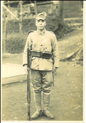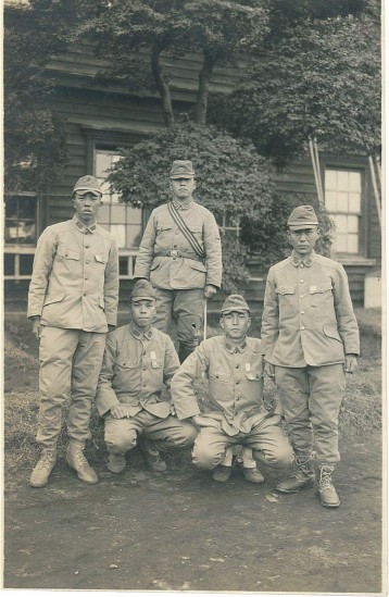 出征の日、深川区安宅町自宅で軍の使者を迎える。