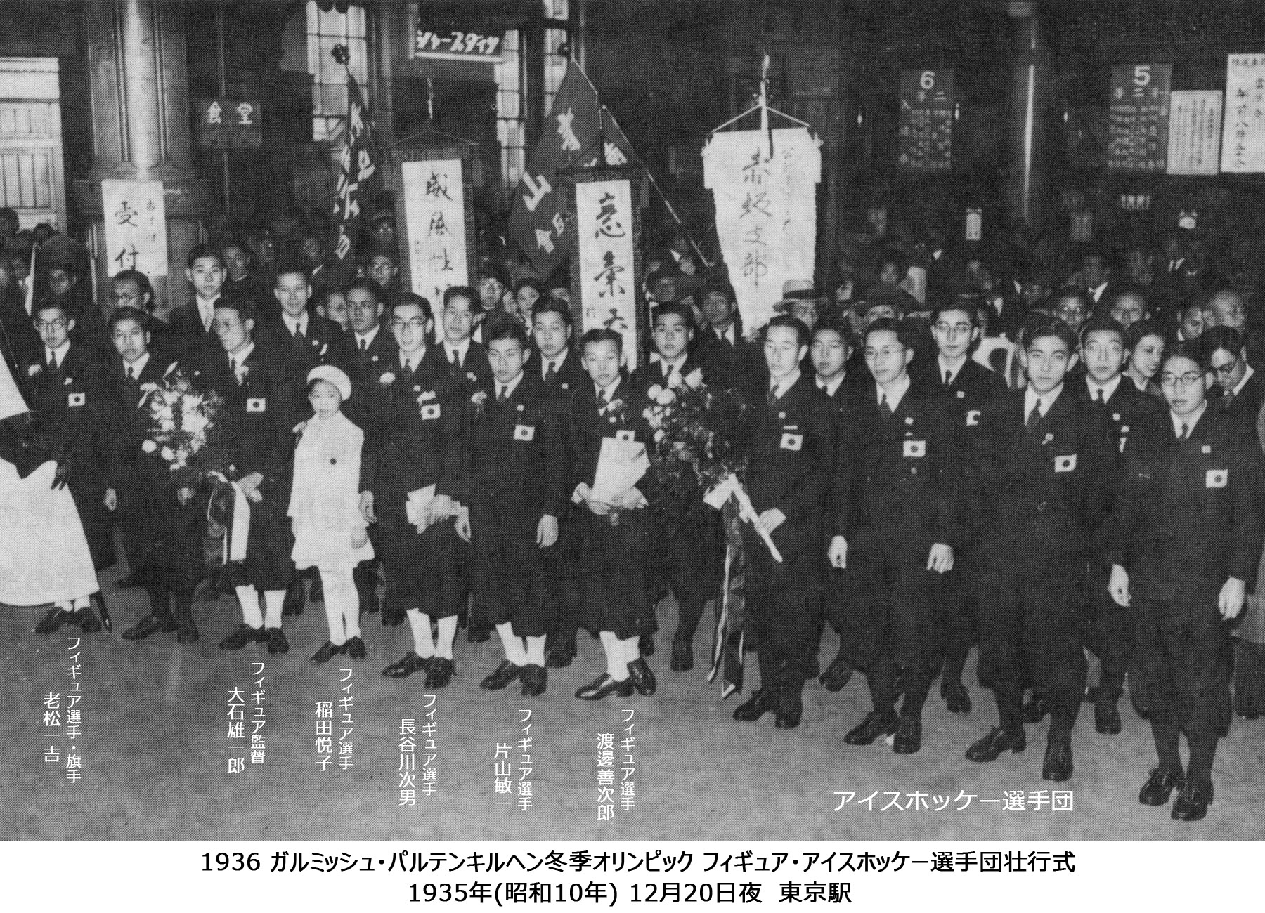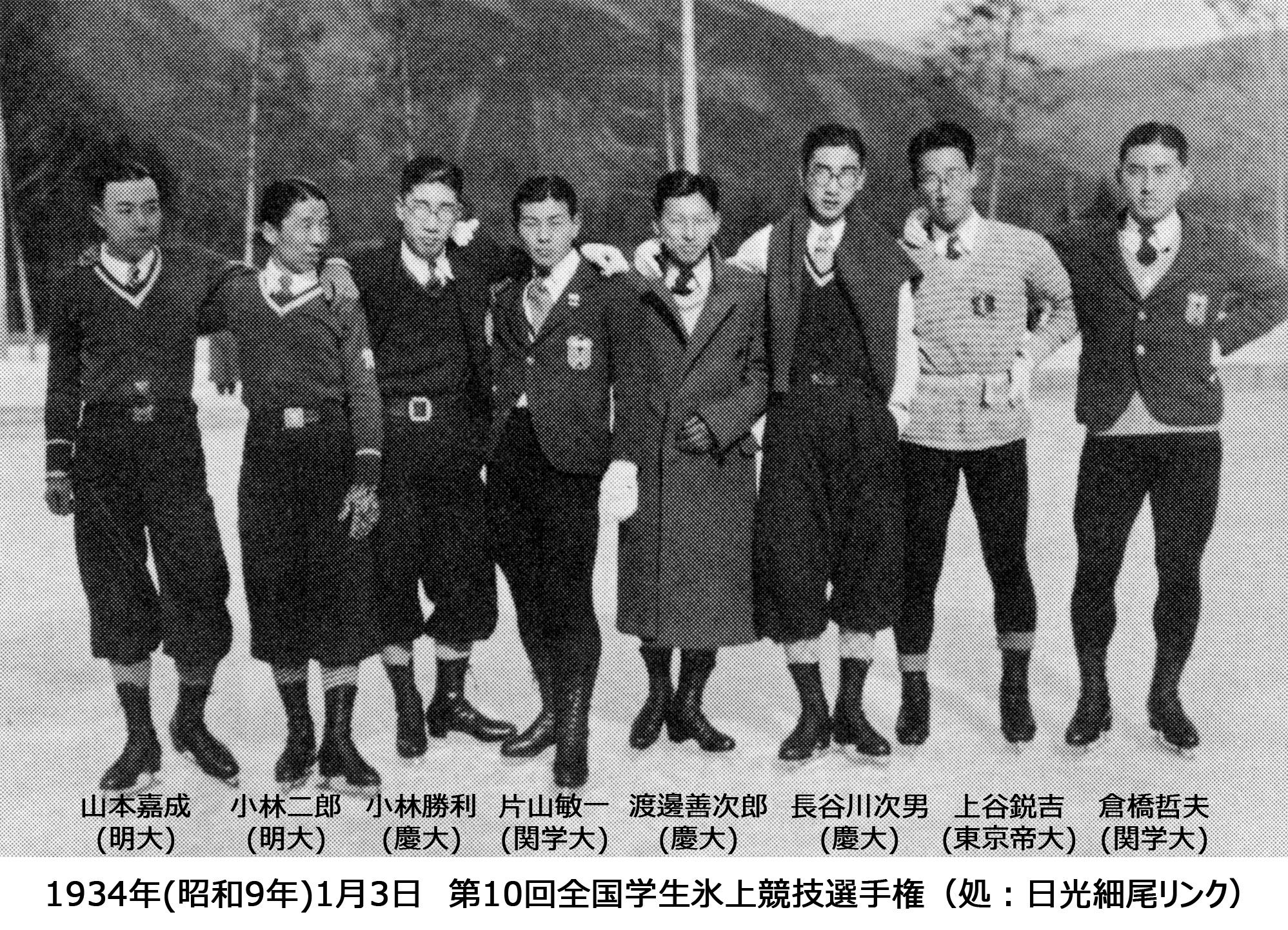 ★渡邊善次郎善十郎次男、慶応義塾大学アイススケート部で活躍。1936年ガルミッシュパルヘンキルヘン冬季オリンピックフィギアスケートに出場 |